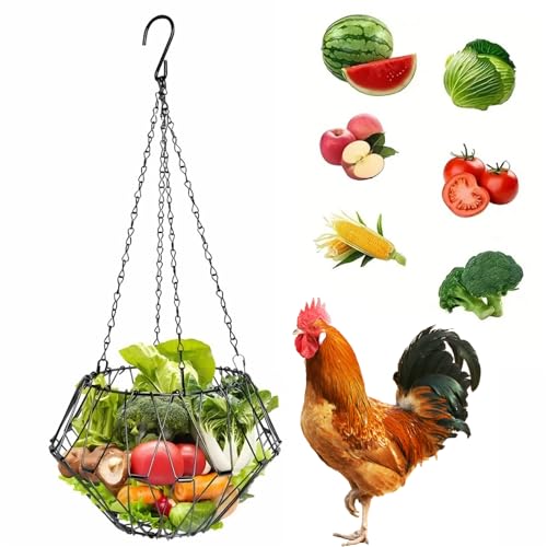 Mangeoire Poules Suspendre pour Légumes Fruits, 40cm Automatique et Mangeoire Poule pour Canards, Oies, Oiseaux (Noir)