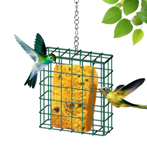 Zeqeey Mangeoire à oiseaux en métal à suspendre pour boules de graisse et granulés de suif - Mangeoire à oiseaux en fer pour nourrir le jardin, les oiseaux sauvages, rouge-gorge, mésange, moineau