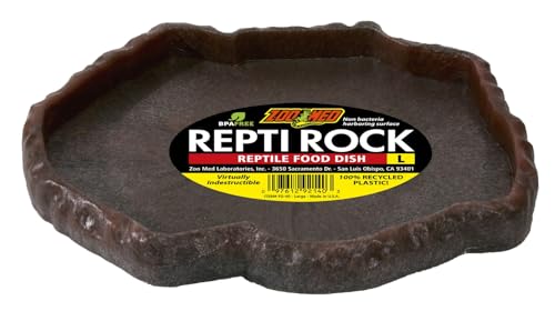 Zoo Med Repti Rock - Mangeoire pour Reptile Terrarium, Ornement d'Aquarium Recyclé Indestructible, Bol Reptile Antibactérien, 32X2,5X24 CM