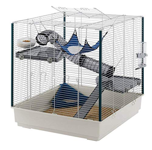 FERPLAST Cage pour Rongeurs FURET XL pour Furets, Chinchillas, en Métal, Accessoires inclus : Mangeoire, Abreuvoir, Coin WC, Hamac, Etagères, Echelle, Jeu de tuyaux. 80x75xh86,5cm