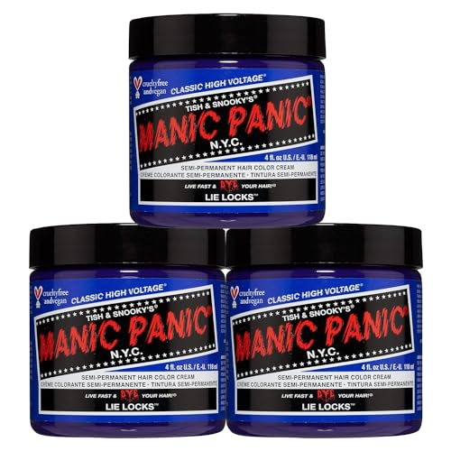 Manic Panic Lie Locks Classic Creme, Vegan, Cruelty Free, Blue Semi Permanent Hair Dye 3 x 118ml