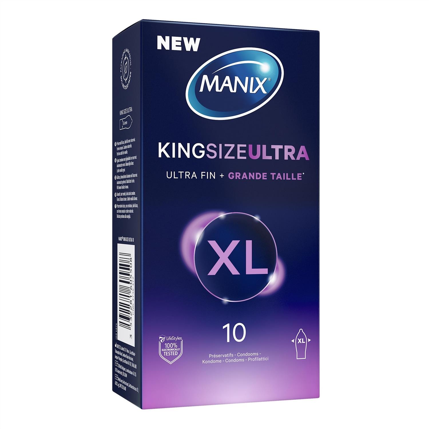 Manix King Size Ultra: Boite de 10 Préservatifs pour Homme Grande Taille Xl – Plus larges, Plus Longs et Extra Fins pour un Confort Maximal/Diamètre 56mm