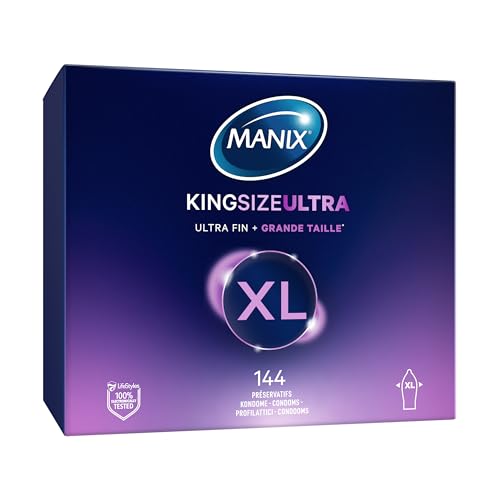 Manix King Size Ultra: Boite de 144 Préservatifs pour Homme Grande Taille Xl – Plus larges, Plus Longs et Extra Fins pour un Confort Maximal/Diamètre 56mm