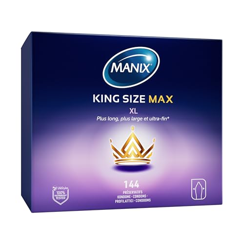 Manix King Size Max : Boite de 144 Préservatifs pour Homme de Grande Taille Xl – Plus larges, Plus Longs et Extra Fins pour un Confort Maximal / Diamètre 56mm
