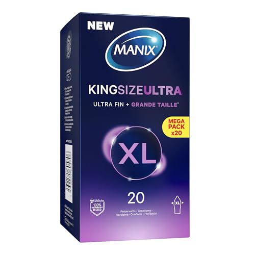Manix King Size Ultra: Boite de 20 Préservatifs pour Homme Grande Taille Xl – Plus larges, Plus Longs et Extra Fins pour un Confort Maximal/Diamètre 56mm
