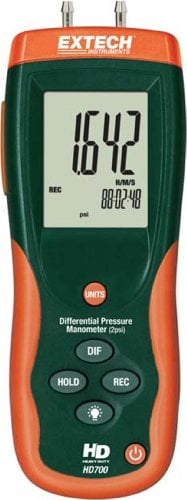 Extech HD700 Manomètre De Pression Différentielle, Manomètre Haute Résolution ± 2 Psi, 11 Unités, Enregistreur De Données USB, Enregistreur Max./Min./Moy., Écran LCD Rétroéclairé, Étui Rigide