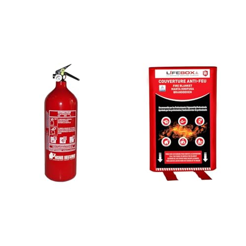 Extincteur à Poudre 2kg Lifebox avec manomètre de Pression pour Feux de Classe ABC & Couverture Anti-Feu 1,2m x 1,8m