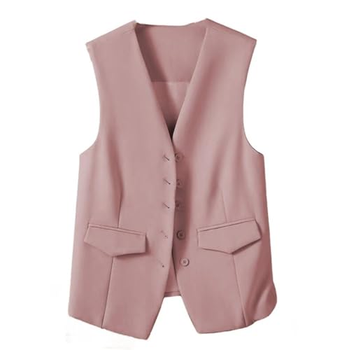 CuLtP Gilet pour Femme Blazer sans Manches, Élégant Slim Boutonné Travail Bureau Gilet Manteau Rétro Gilet De Fête, Col en V Économique Costume Habillé Gilet Gilet,Rose,M