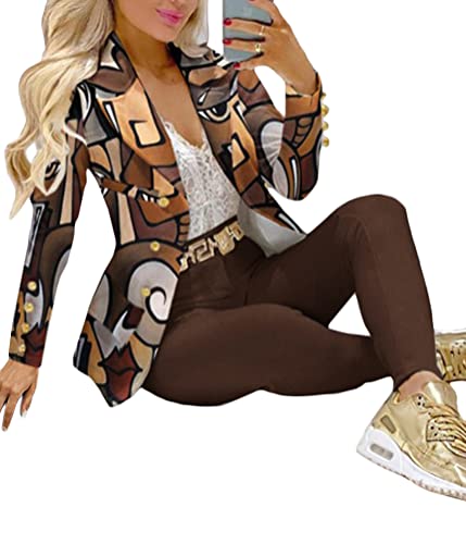 ORANDESIGNE Tailleur Femme 2 Pièces Elegant Slim Fit Blazer Veste Formel Bureau Travail Pantalon Costumes Revers Manteau Ensemble A Café S