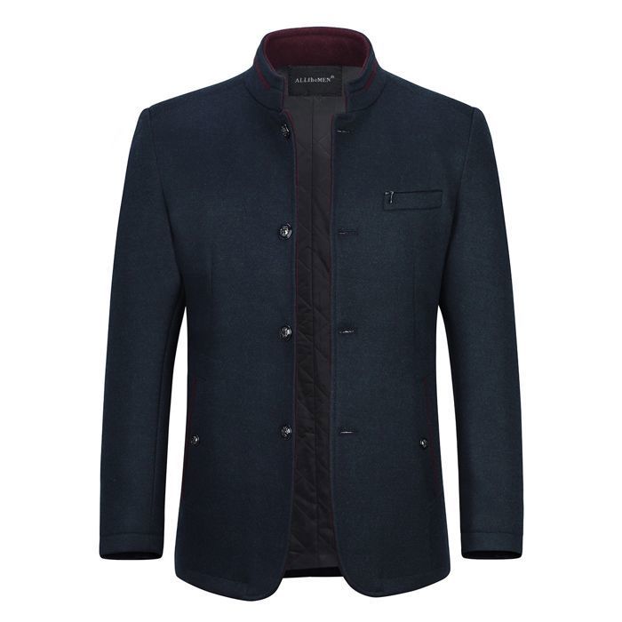 Allthemen Manteau Homme dhiver Caban Court Slim Fit Col montant daffaires sans Repassage Casual Bleu