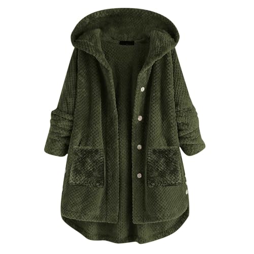 Sweat à capuche en peluche pour femme - Veste à capuche longue élégante - Veste de transition - Grandes tailles - Cardigan à capuche en polaire - Bouton épais - Manteau en laine - 002 - Vert, 3XL
