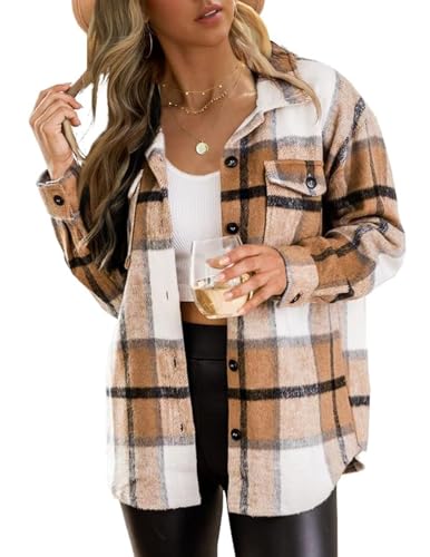 Zeagoo Veste d'Automne pour Femme Chemise de Bûcheron à Carreaux Veste Courte à Carreaux Flanelle d'Hiver Shacket Manteau Kaki 798 XL