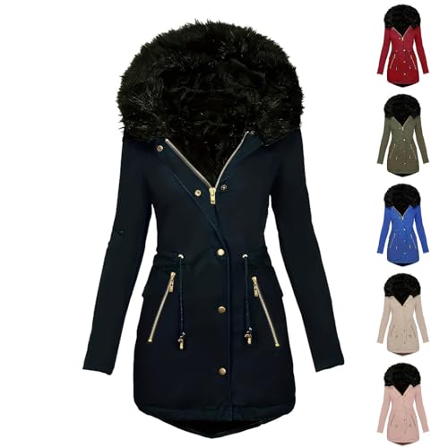 Parkas Femme Manteau Femme Hiver Doublure en Fourrure Chaude Veste d'hiver à Capuche Grand Col en Fourrure Doudoune,Black,M(55-65kg)