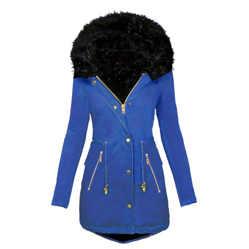Casiler Manteau/Veste pour Femme avec Col en Fausse Fourrure – Veste -Longue Chaude Ceinturée, Vêtement D'extérieur Élégant pour l'hiver.