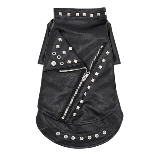 Hmpet Manteau d'hiver pour Chien Blouson De Moto en Cuir pour Chien, Manteau en Cuir Chien Cool Vêtements d'hiver Chaud pour Animaux De Compagnie, Coupe-Vent Étanche,Noir,S
