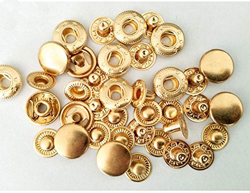 Uteruik Lot de 100 boutons pression en métal pour manteau en cuir, doudoune, veste, jeans, Couleur dorée., 15 mm