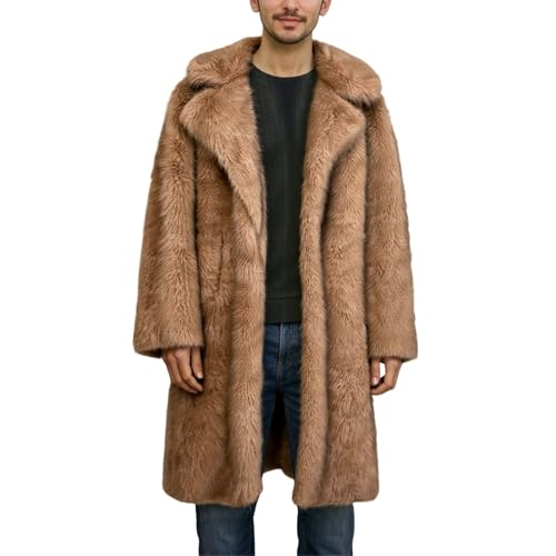 Générique Manteau Fausse Fourrure Femme,Manteau Long en Fausse Fourrure Luxueuse à Revers CrantéS éLéGant Et Raffiné IdéAl pour l'hiver Chaud Confortable Et RéSistant Sophistiqué (Khaki L)