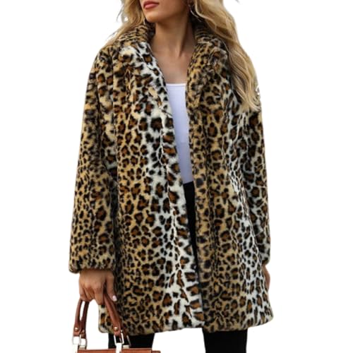 Nouvelle Veste en Fourrure Léopard pour Femme, Manteau en Fausse Fourrure Léopard pour Femme, Manteau en Fausse Fourrure pour Femme, Manteau Ouvert sur Le Devant, (Léopard,3XL)