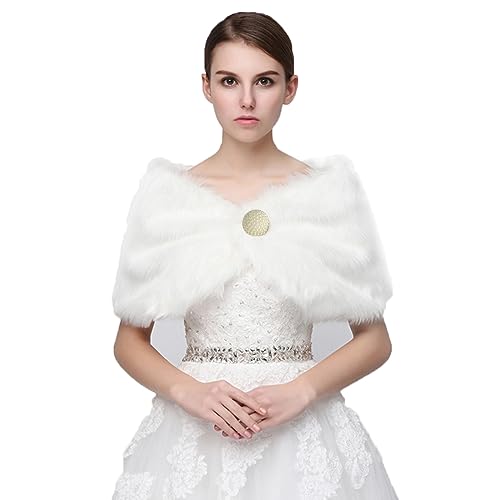 YO-HAPPY Femmes Châle, Femmes Blanc Fausse Fourrure De Mariée Wrap Étole Châle Cape De Mariage Artificielle Perle Boule Embellissement Veste d'hiver Manteau Shrug
