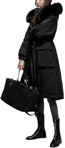Hiver Femmes 90% Blanc Canard Doudoune Ample Long Manteau en Duvet Grand Col en Fourrure Capuche Vêtements D’extérieur Chaud Épais Parka, Black, S