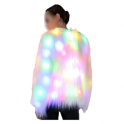 AXTMR Manteau de Veste LED en Fausse Fourrure, vêtements Lumineux LED Costumes de scène Disco, Nous ne transportons Pas 3 Piles AA,White,L