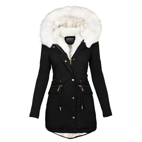 JiaWell Veste d'hiver Noire avec Fourrure for Femme | Parka d'hiver Blanche doublée de Fourrure, Veste Polaire élégante et Fine, Manteau matelassé épais et décontracté avec col en Fourrure(Schwarz,M)