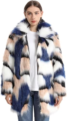 Manteau en Fausse Fourrure De WOME Log Jacket Witer Outfits Moelleux Chaud Vêtements D’extérieur Manteau en Peluche avec Fermeture éclair, White Blue, M