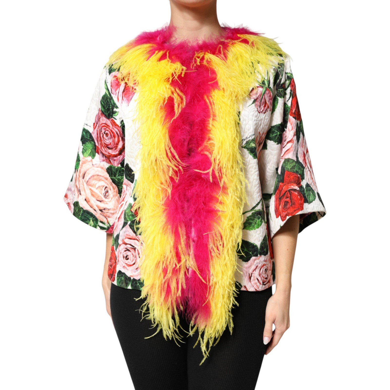 Dolce & Gabbana Veste Blanc Floral Manteau Cape Fourrure Roses IT40/US6/S