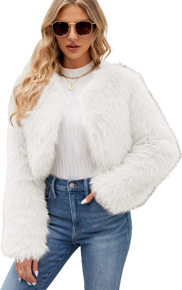 Femme Courte Veste en Fourrure artificielle Manteau en Fourrure artificielle Douillet Manteau en fourrure Épais Chaud Veste d'hiver Veste en fourrure Manches longues Manteau d'hiver, Femme , Blanc, S