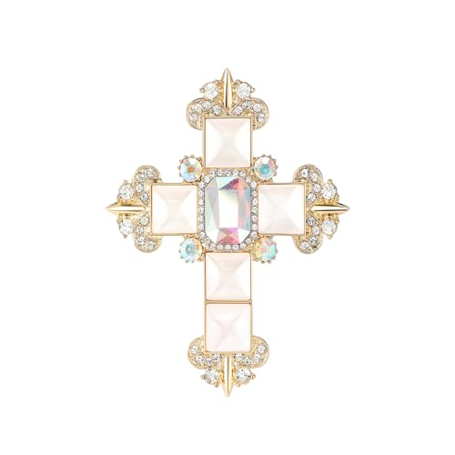 Broche Croix Vintage En Strass Or Plaqué Avec Cristaux Zirconium Élégante Pour Costume Manteau Mariage Cérémonie Accessoire Pour Femme Homme Pierre Œil De Chat Scintillante Luxe Chic Bijoux (AB cz)