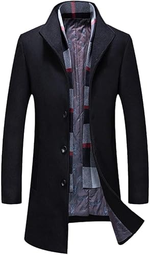 Automne Hiver Manteau en Laine Homme Écharpe en Laine Et Laine Manteau Homme, Black, 3XL