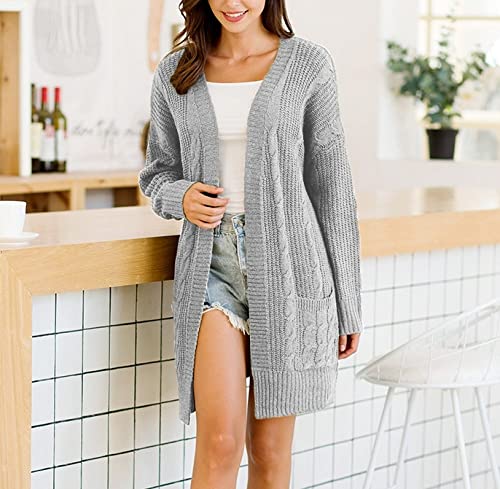 BGNHJ Cardigan Femme,Décontracté Lâche Couleur Unie Gris Dames Cardigan Tricoté Pulls Ouverts Ultra-Doux À Manches Longues Chunky Chaud Survêtement Veste Long Manteau,XXL