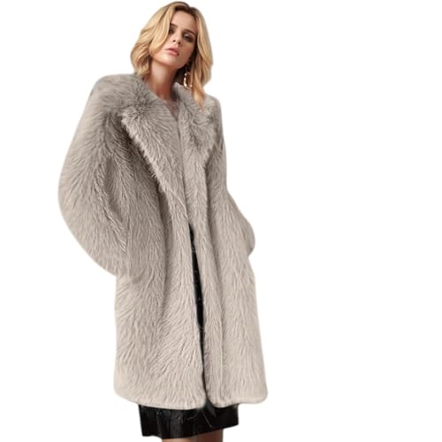 JiaWell Manteaux d'hiver for Femmes avec col en Fourrure, Manteau Long en Fausse Fourrure, vêtements d'extérieur Chauds, vêtements d'extérieur Amples et décontractés for Femmes(Gray,2XL)