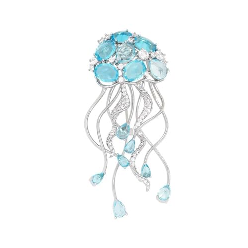 Mode Broche méduse en zircone bleu océan, costume de luxe, manteau, Corsage, cadeau du nouvel an Broche Cristal