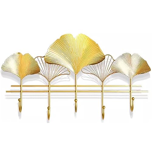 Patère Murale Forme De Feuille De Ginkgo De Style Minimaliste De Luxe Porte Manteau Mural, Métal D'entrée Porte-Manteau Mural avec Crochets 5/7, Installation Facile (Color : Gold, S : 50 * 27 * 6cm)
