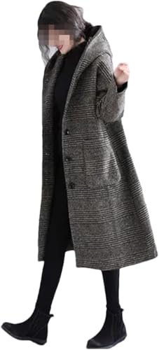 Vintage Automne Hiver Manteaux en Laine À Capuche Manteau Long Femmes Vestes Chaudes Vêtements D’extérieur, Brown, XL