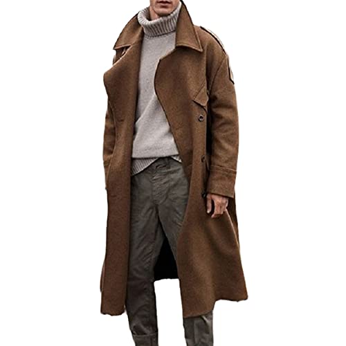 Veste D’Hiver Mélangée Rétro Coupe-Vent Long pour Hommes Casual Marron Manteau en Laine Chaud Style De Rue, Khaki, M