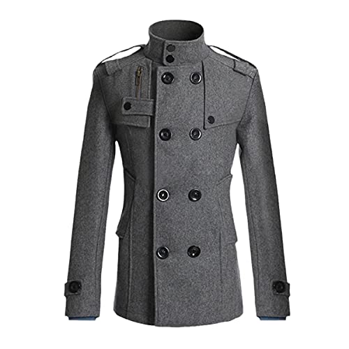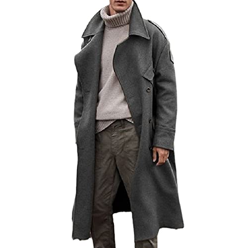 Veste D’Hiver Mélangée Rétro Coupe-Vent Long pour Hommes Casual Marron Manteau en Laine Chaud Style De Rue, Grey, XL