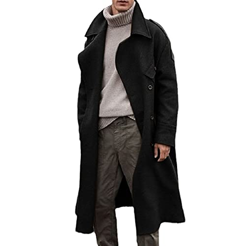 Veste D’Hiver Mélangée Rétro Coupe-Vent Long pour Hommes Casual Marron Manteau en Laine Chaud Style De Rue, Black, M