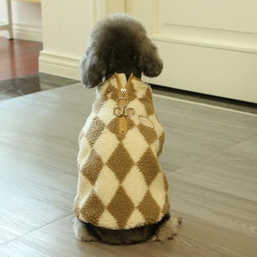 Manteau pour Chien en Laine à Carreaux avec Boucle pour Laisse - Pull d'hiver Vetement Chien, Convient aux Chihuahuas, Yorkshire Terriers et Autres Races(Brown,Medium)