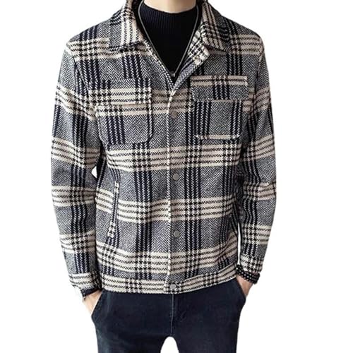 AYAZER Veste en Laine à Carreaux pour Hommes Automne et Hiver Manteau en Laine Court épaissi Mince et Beau-Marron 1-M