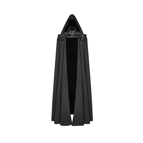 YUEMOL Cape Noir Manteau à Capuche médiéval 4 Couleurs, Costume de Cosplay d'assassin for Hommes, Cape de Chevalier Gothique Vintage à Boucle sur épaule(Black,M)