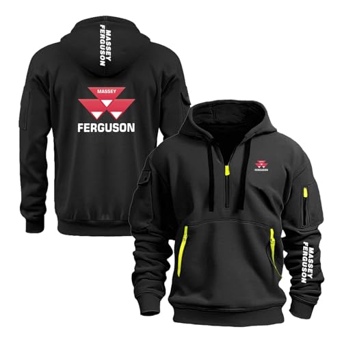 TGFQINAM Veste À Capuche Imprimée pour Hommes pour M.A.SS.EY FE.RG.US.on Sweat-Shirts Unis À Manches Longues Demi-Zip Sweat À Capuche Manteau À Capuche -Black||3XL