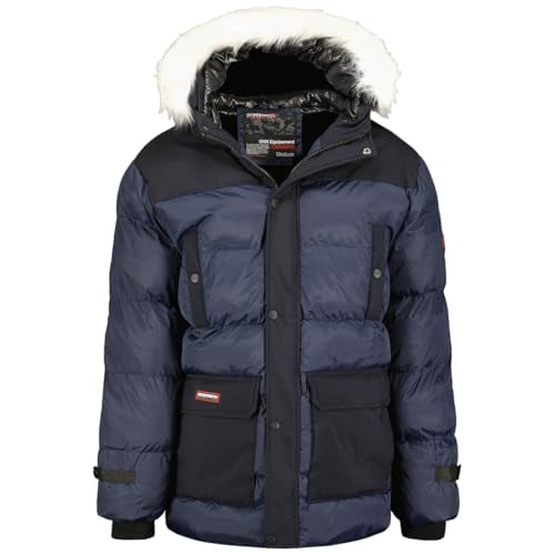 Geographical Norway Dalibor Men Parka Longue Chaude Homme Automne Hiver - Manteau Impermeable Deperlant - Veste Capuche Fourrure Outdoor - Blouson Coupe Vent - Hommes (Marine XL)