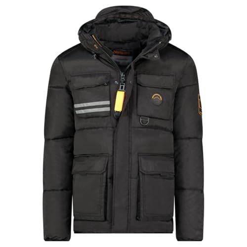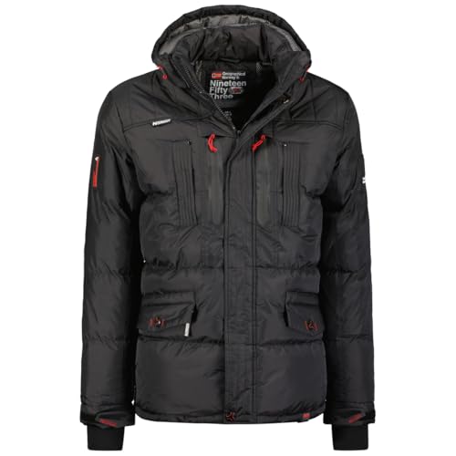 Geographical Norway BILBOQUET MEN - Parka Passe Tête Chaude Homme Imperméable - Manteau Épais Capuche Fourrure Outdoor - Blouson Chaud Coupe Vent Hiver Doublure Extérieur Veste Hommes NOIR M