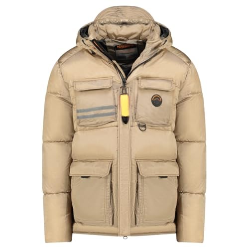 Geographical Norway Dolbary Men Parka Longue Chaude Homme Automne Hiver - Manteau Impermeable Deperlant - Veste Capuche Fourrure Outdoor - Blouson Coupe Vent - Hommes (Beige M)