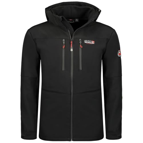 Geographical Norway Timmexama Men - Veste Softshell Capuche Homme Impermeable - Manteau Outdoor Blouson Coupe Vent Tactique Resistant - Randonnee Ski Automne Hiver Printemps (Noir S)