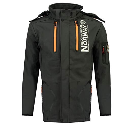 Geographical Norway Tyreek Men Veste Softshell Capuche Homme Impermeable - Manteau Outdoor Blouson Coupe Vent Tactique Resistant - Randonnee Ski Automne Hiver Printemps (Gris Fonce Orange S)