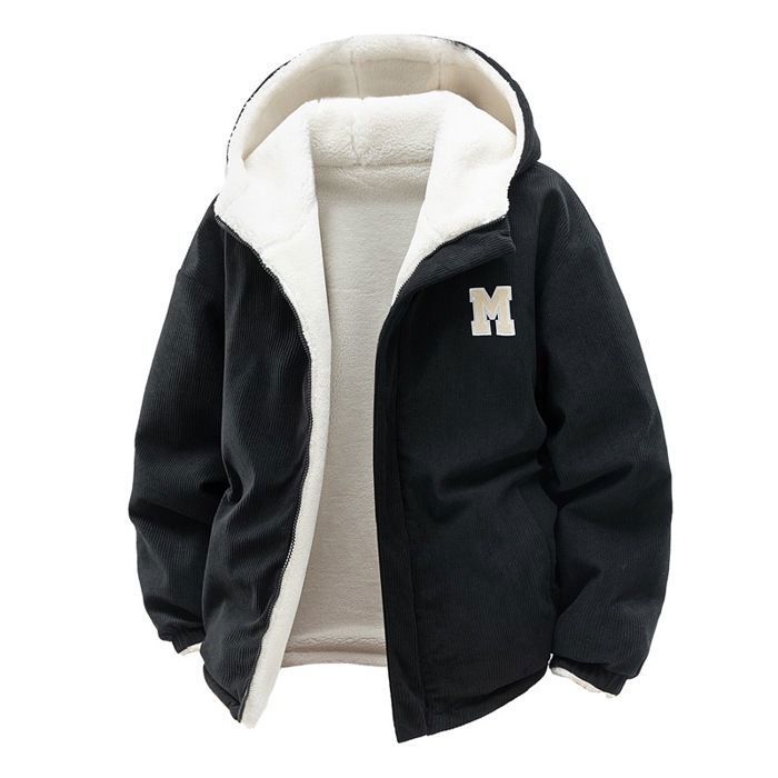 Manteau Réversible en Velours Côtelé Homme/Femme Adulte Col capuche - Noir