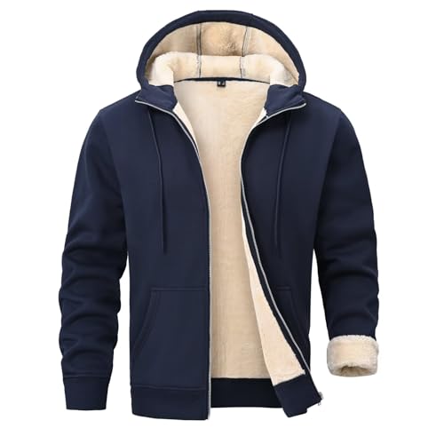 PrimeCrest Sweat a Capuche Homme Veste Hiver Zippé Blouson Polaire Sweatshirts Chaude Sherpa Thermique Travail Sweat-Shirt Doublée Casual Manteau avec Poches Hoodies Mens Jacket Bleu M
